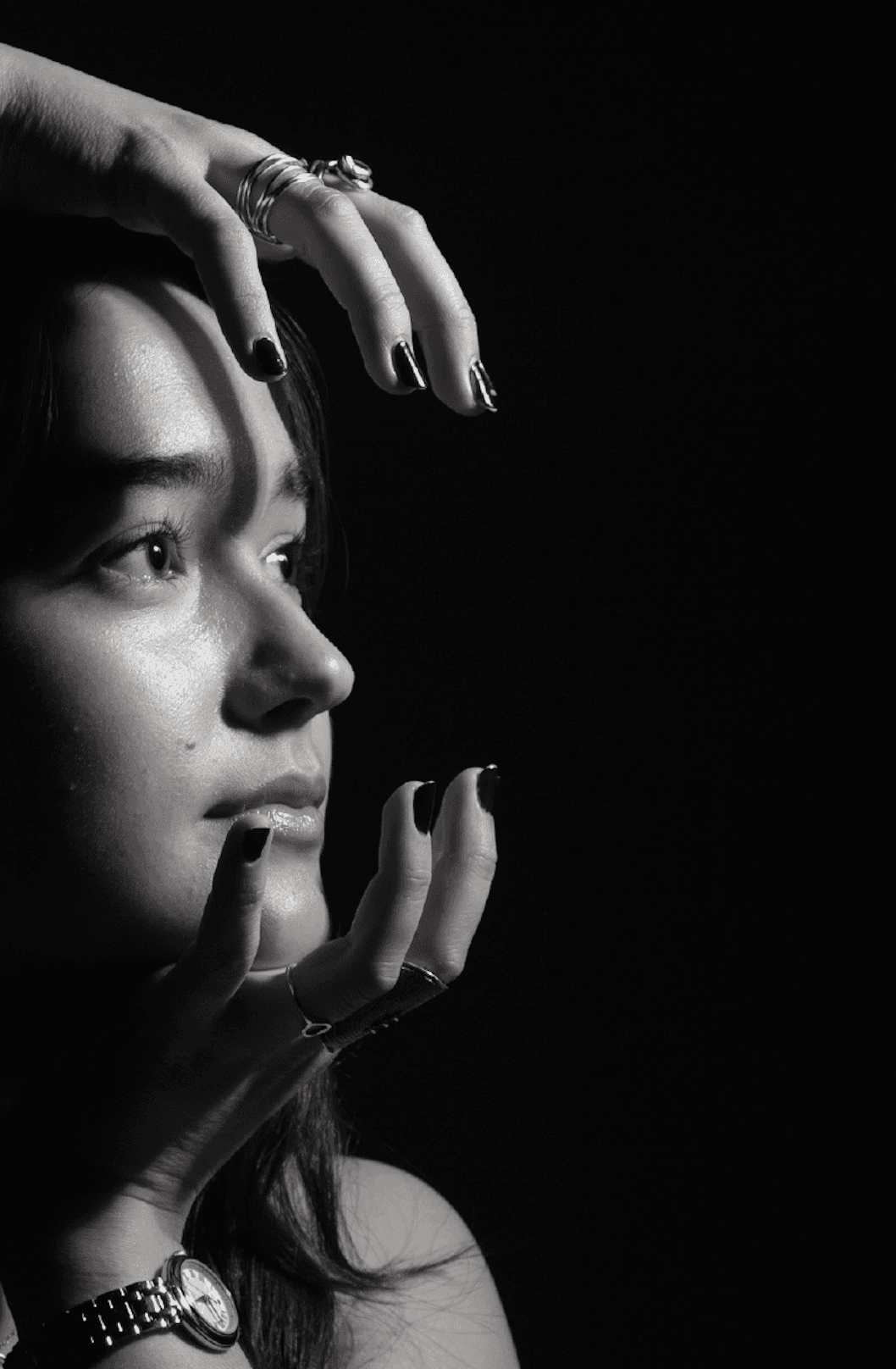 El blanco y negro elimina la distracción del color y convierte cada retrato en un diálogo entre la claridad y la oscuridad, entre lo que dejamos ver y lo que guardamos.